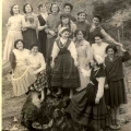 Fotografía de grupo realizada a las integrantes del taller de modistas de Josefina.La fotografía se realizó en el año 1956 en La Reguerona con motivo de la festividad de Santa Lucía.