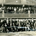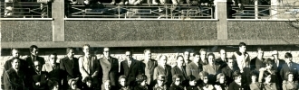 Retrato colectivo realizado en la Pumarada de Condao, casa Ladio con motivo de la celebración del día de Santa Lucía, patrona de los sastres, la fotografía se realizó en el año mil novecientos sesenta y cinco.