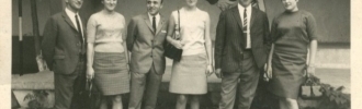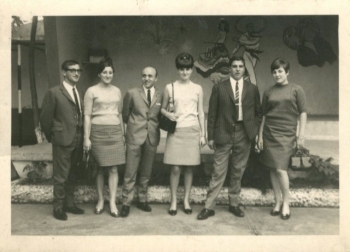 Fotografía realizada en la década de 1960 en la antigua Pista Imar. De izquierda a derecha, Fonsi, Feli, Grandelino González, "La Peque", Madorín y Severina Asenjo.