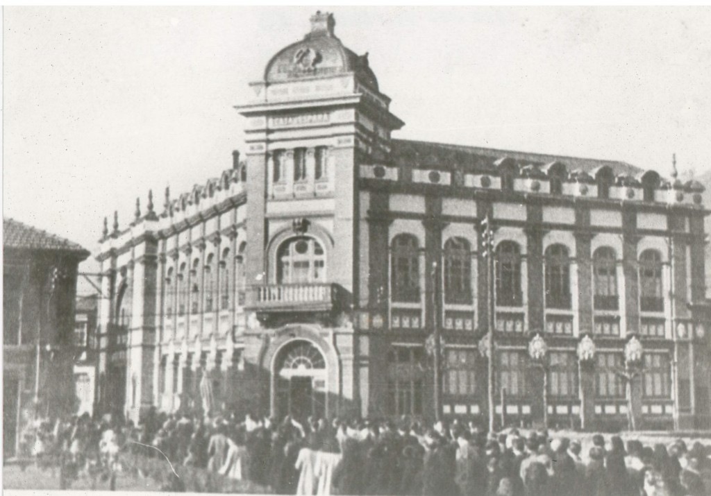 Antigua Casa del Pueblo de El Entrego. Fotografía realizada a principios del siglo pasado.