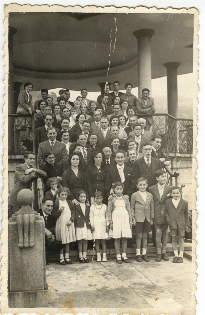 Enlace matrimonial de Jamín "el de Vina", retrato colectivo realizado en el parque de La Laguna en los años cincuenta.