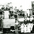 En la fotografía aparece un grupo de trabajadores en la locomotora "Matilde" en las Minas del Sotón de El Entrego, año 1900.