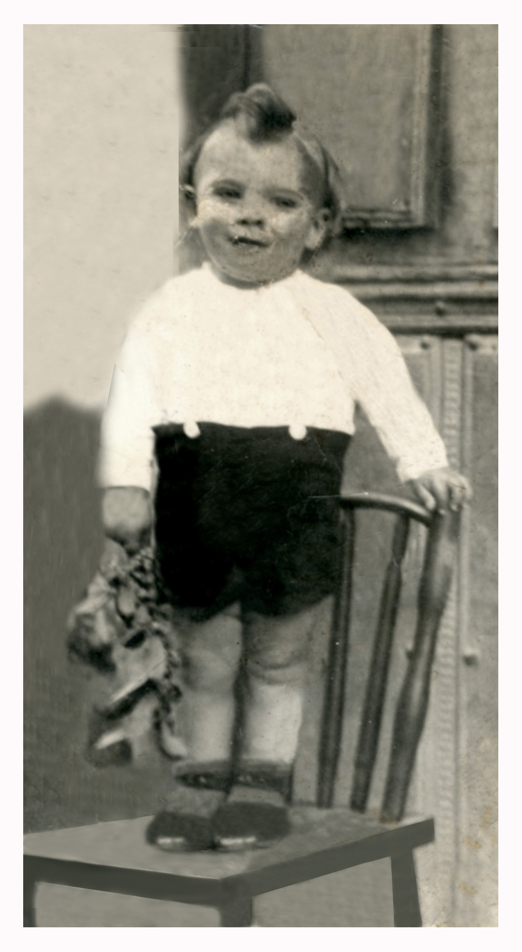 Retrato individual realizado a Urbano delante de La Casuca en L´Edrau.La fotografía data del año 1948.