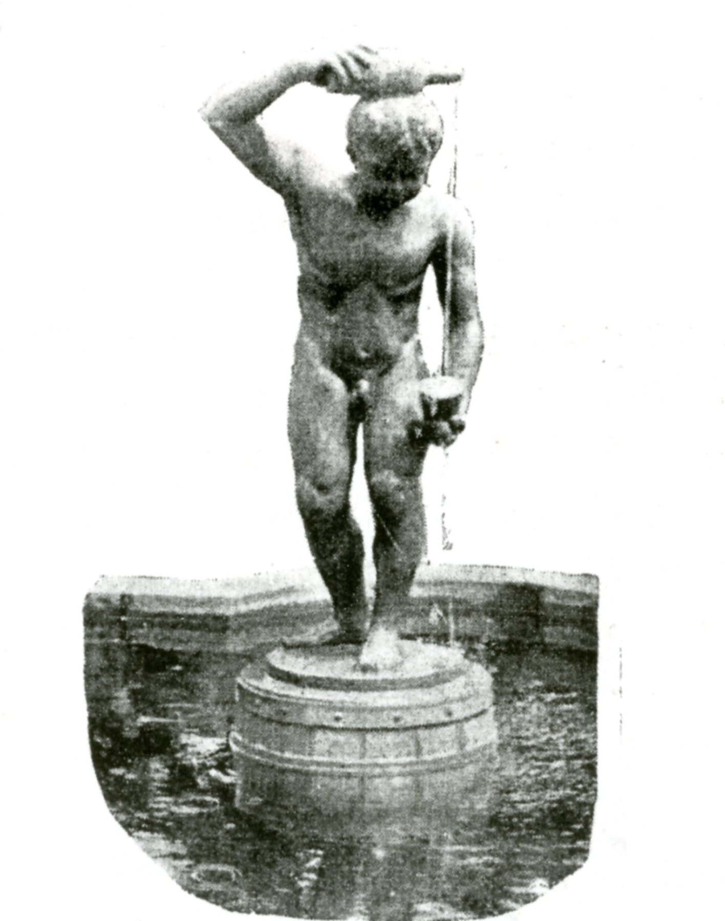 En la fotografía aparece el Niño Baco del El Jardinillo instalado en los años cuarenta,escanciador de sidra.