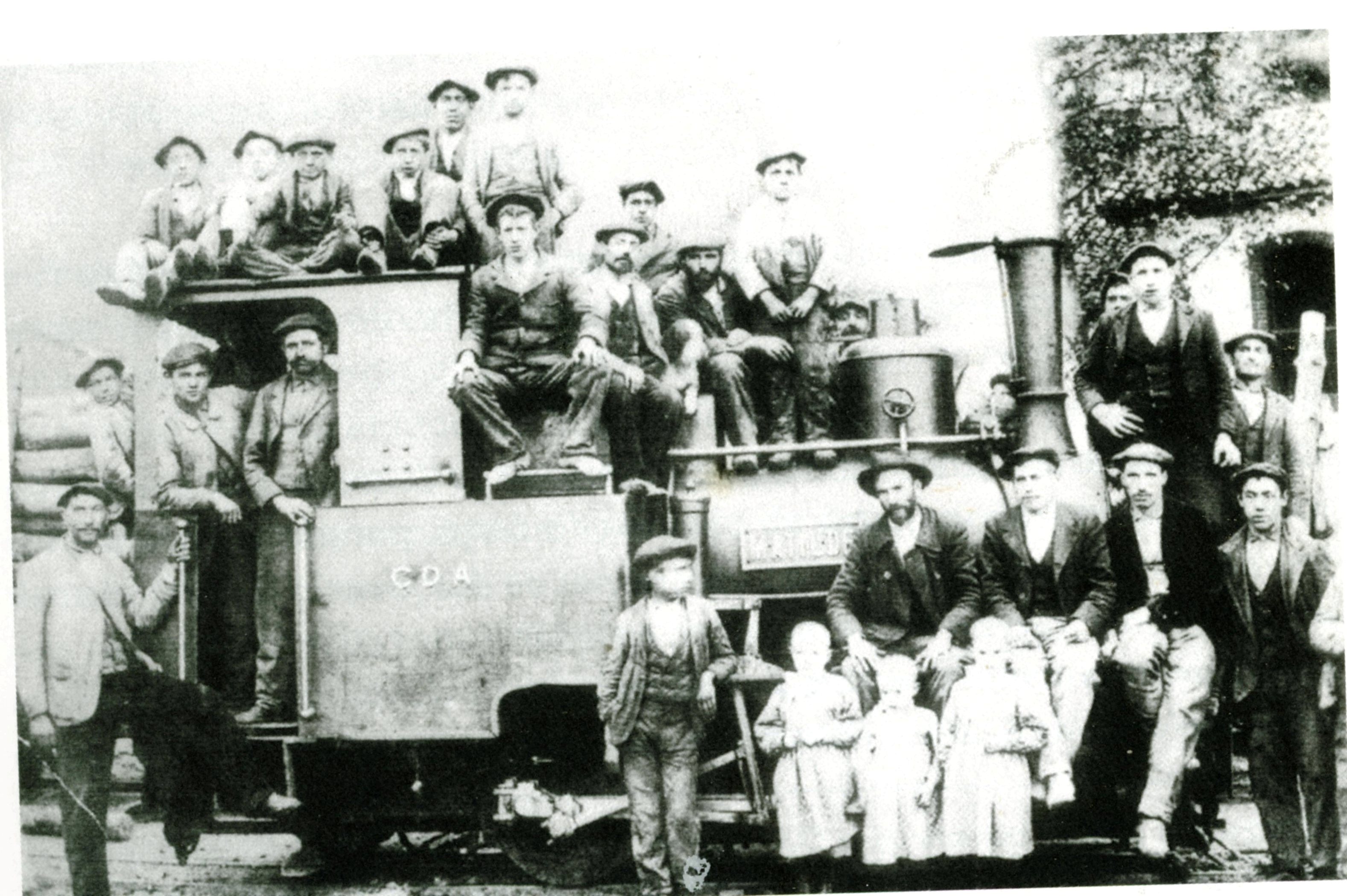 Grupo de trabajadores en la locomotora "Matilde", 1900
