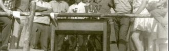 La Comisión de festejos "Santo Ángel de La Guarda" entregando los trofeos a los ganadores de la carrera de cintas a caballo en el año 1967.