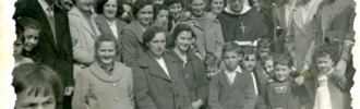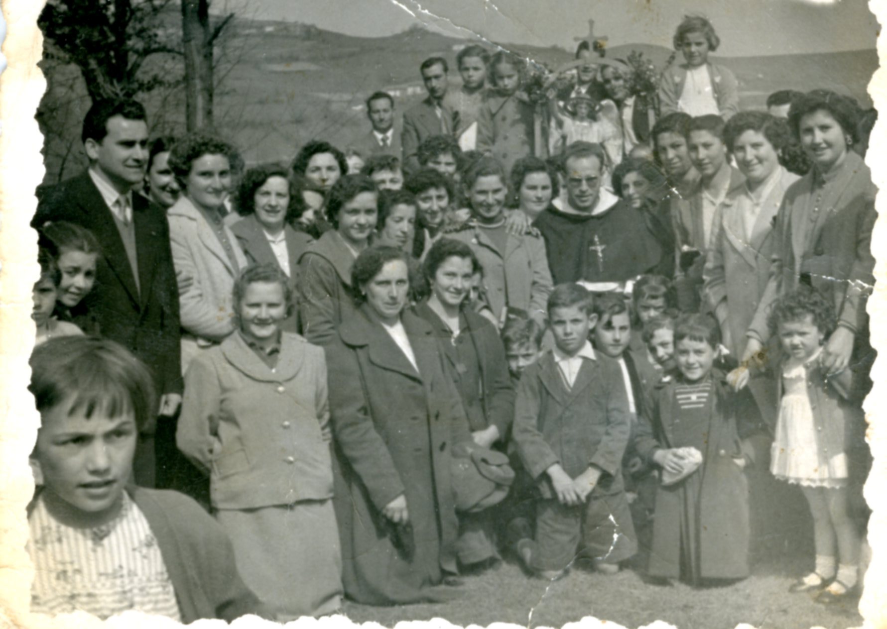 En la fotografía observamos a un grupo de personas preparadas para la procesión del Ángel en L´Edrau.La fotografía se realizó en el año 1955.