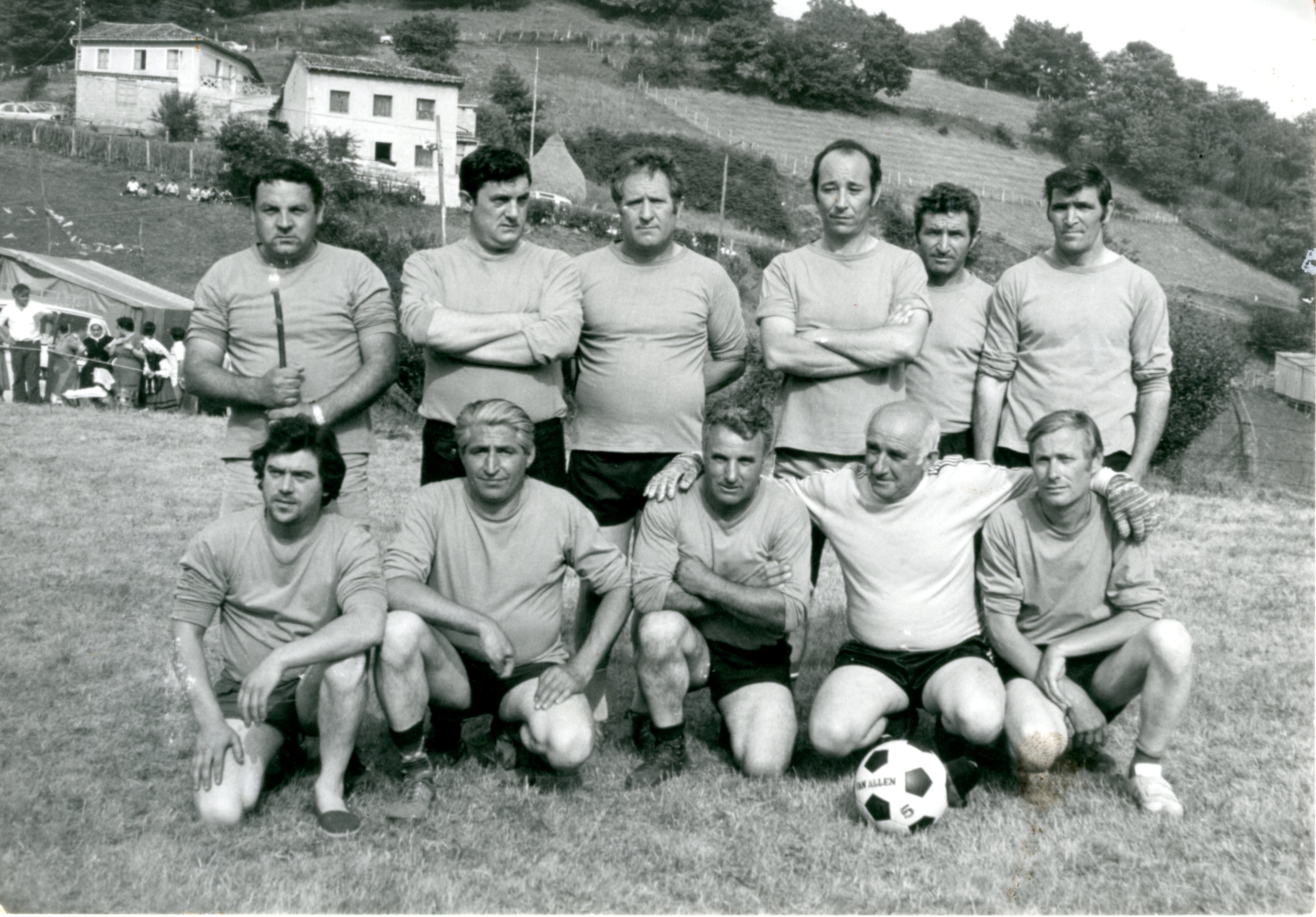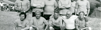 Retrato del grupo que constituyó la selección de fútbol viejas glorias de L´Edrau en el año 1970.