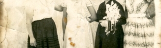 Retrato colectivo realizado en la boda de Inés,natural de La Cabañina.La fotografía se realizó en la década de los cincuenta.