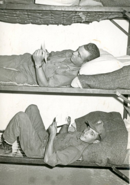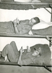 Retrato de dos vecinos del concejo realizando el servicio militar en El Ferral (León).La fotografía se realizó en el año 1966.