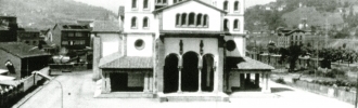 Fotografía realizada a la iglesia parroquial de El Entrego el día de su inauguración en 1957.
