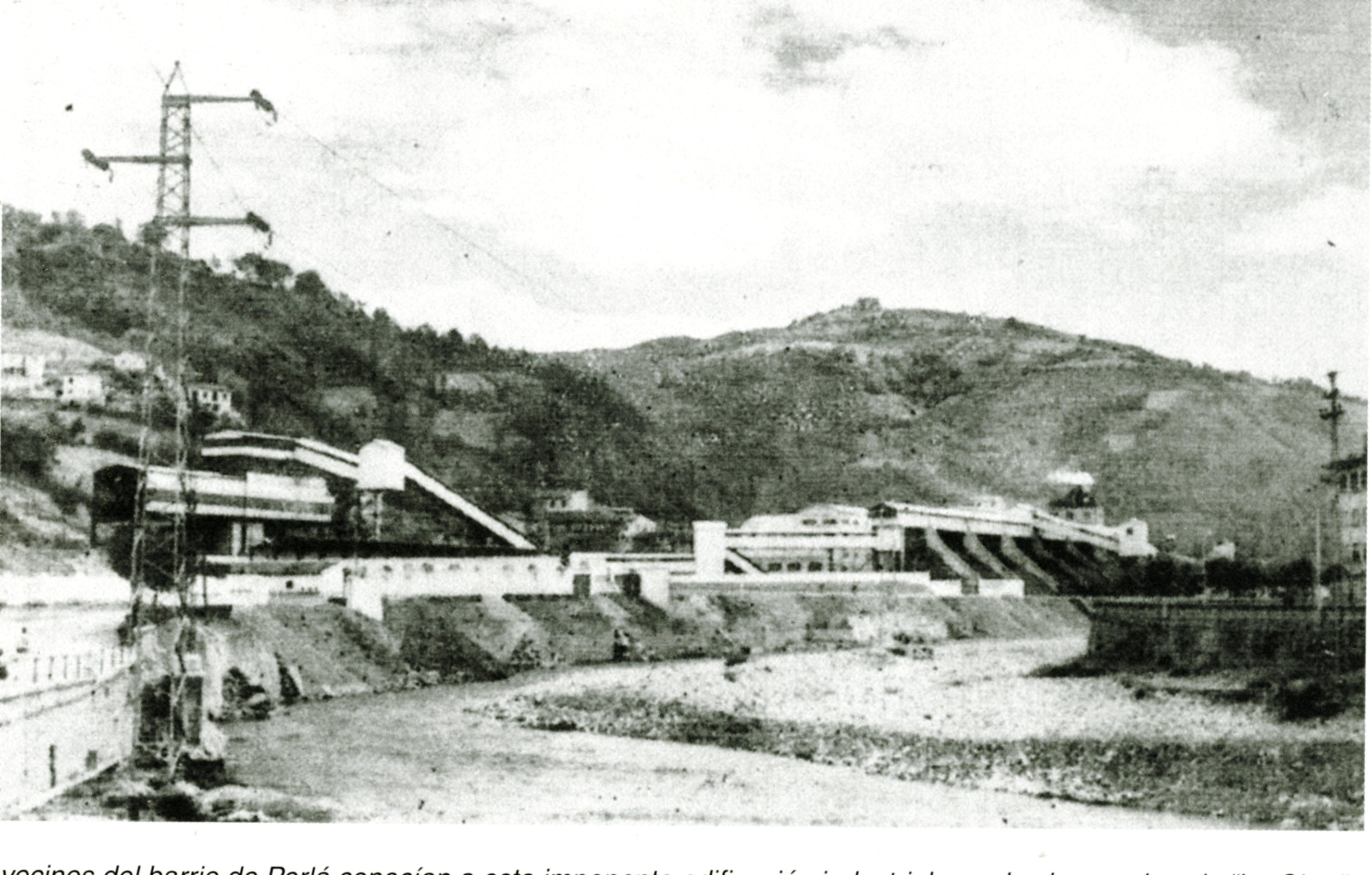 Fotografía realizada en la edificación industrial de "La Obra", conocida en el barrio de Perlá por este sobrenombre por la ausencia de sus avances.En el sXXI nos encontramos el viejo estadio de El Nalón y la carretera.