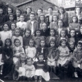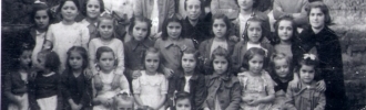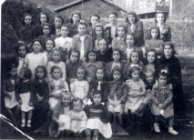 Retrato de grupo realizado en el año 1945. En la fotografía aparece Doña Teófila como profesora del grupo escolar.
