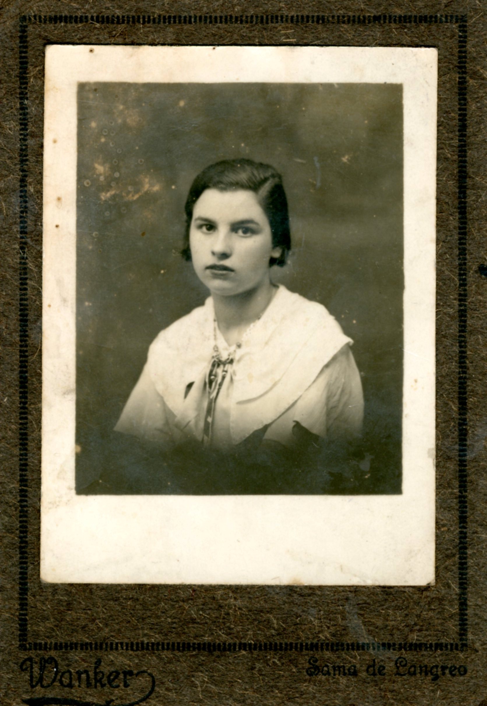 Retrato individual de Carmen Cortina Antuña, vecina de El Fielato (El Entrego).La fotografía se realizó en el año 1935.