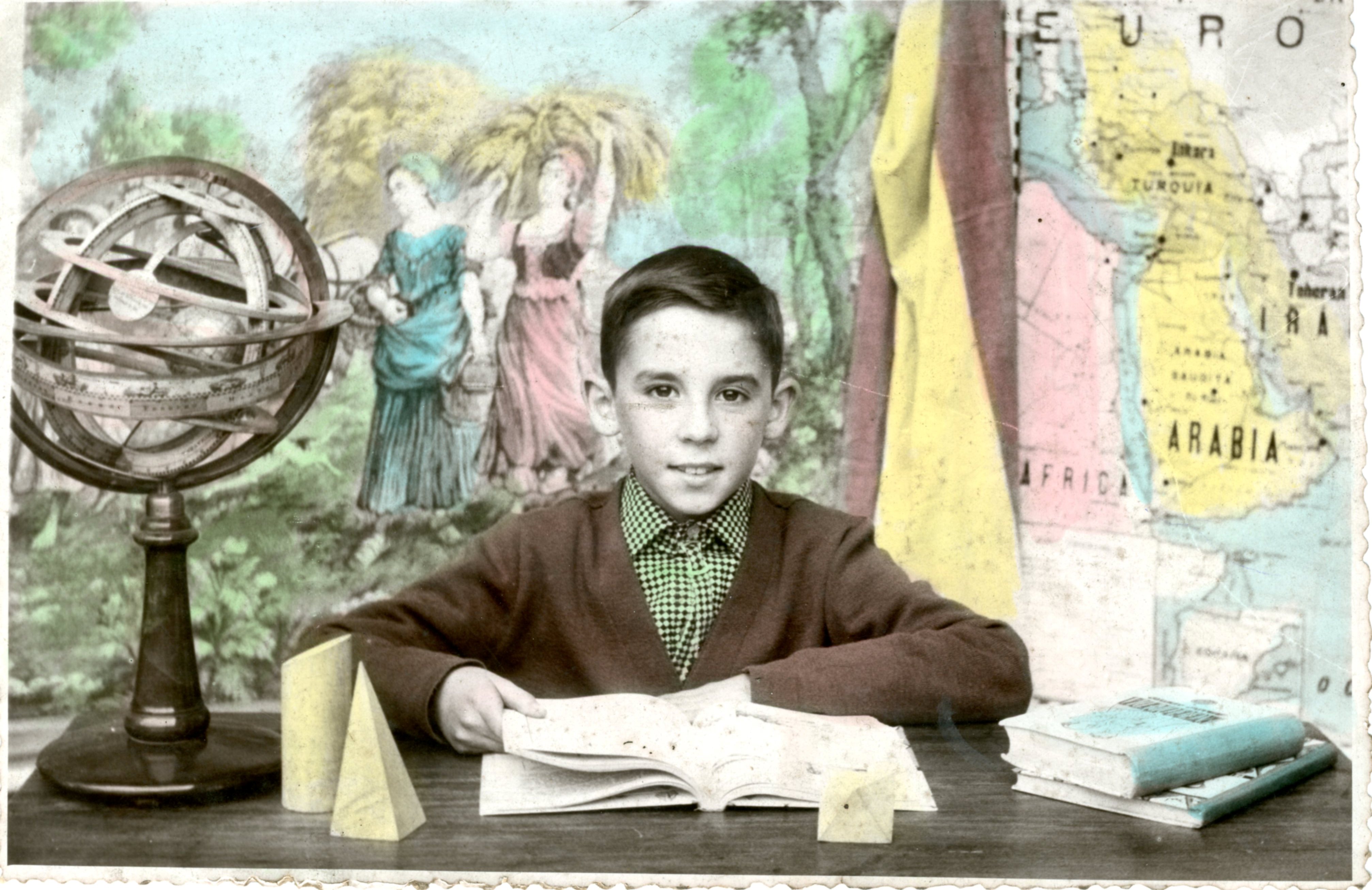 Retrato individual de Tomás Fanjul Cortina.La fotografía se realizó en el año 1954 en la escuela de Los Frailes de El Entrego, situada donde actulamente se encuentran los talleres de Santa Ana.
