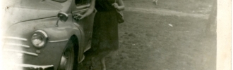 Retrato individual de Mª Victoria Fanjul Cortina en la calle Cok de El Fielato,El Entrego.La fotografía se realizó en el año 1960.