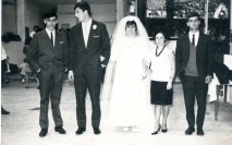 Personas que aparecen en la imagen (de izqda a dcha): (desconocido); José Manuel Llaneza (novio); Sonia (novia); Mª Victoria Fanjul Cortina; (desconocido).