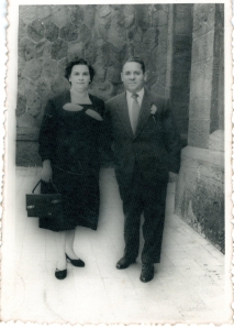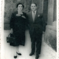 Fotografía del matrimonio Fanjul- Cortina,vecinos de El Fielato, asistiendo a una boda que tuvo lugar en la iglesia San Esteban de Ciaño en el año 1965.
