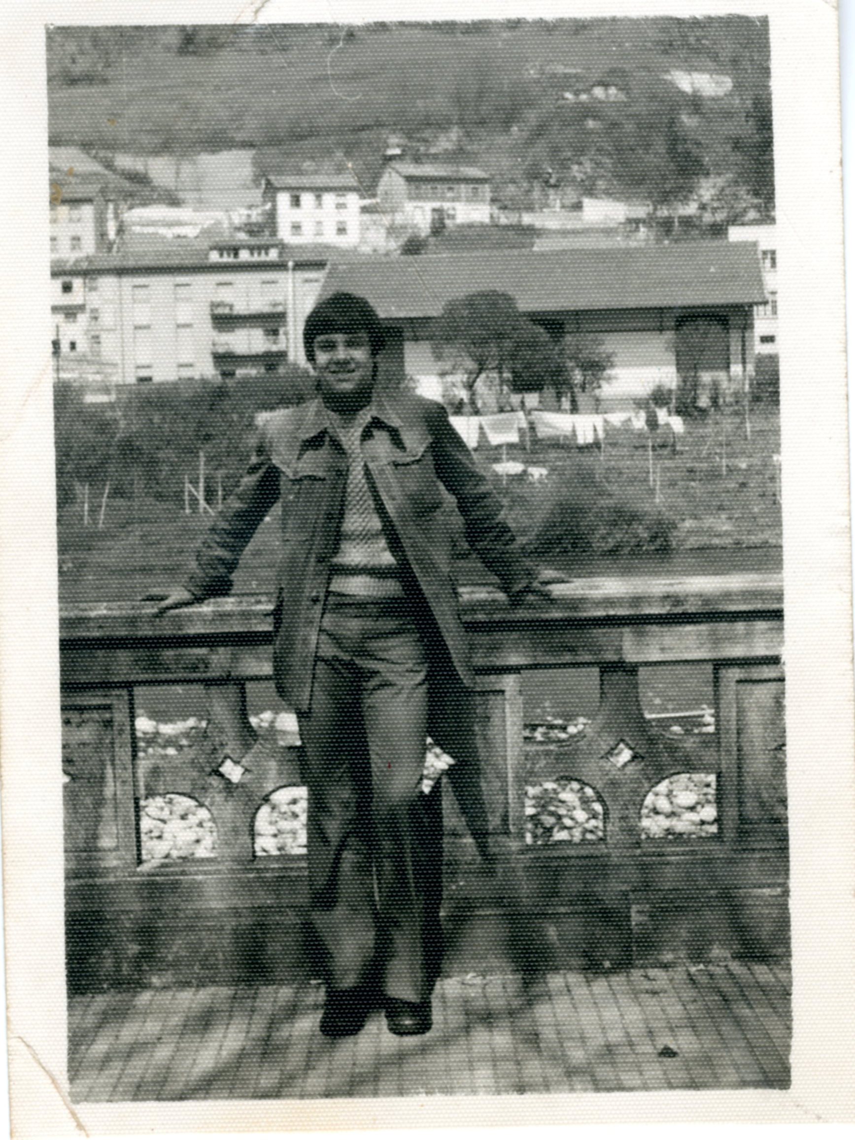 Retrato de juventud realizado a un vecino de El Fielato, El Entrego, en el año 1970.La fotografía se realizó en el parque de La Laguna de El Entrego.