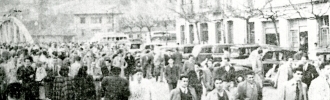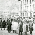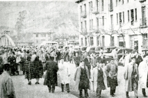 Instantánea realizada por el fotógrafo un domingo por la tarde, a la salida del fútbol.En la fotografía observamos la aglomeración de gente atravesando el puente de La Oscura de El Entrego.