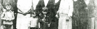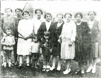 Retrato colectivo realizado a un grupo de vecinas de El Entrego durante las fiestas de La Laguna en el año 1927.