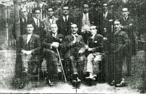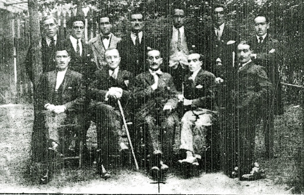 Retrato colectivo realizado a la Comisión de festejos de las fiestas de "Ntra Sra del Rosario".La fotografía se realizó en Sotrondio en octubre de 1924.
