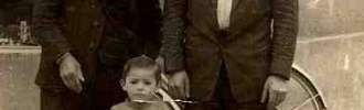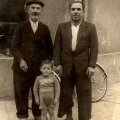 Tres Generaciones de carpinteros: De izquierda a derecha, Mariano García (abuelo), Enrique García Suárez (hijo) y Enrique García García (nieto), fotografiados en la Avenida de la Libertad de Blimea a mediados del siglo XX.